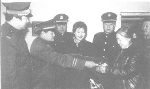 @标图莫改莫删说始@ 图中的女孩是沈阳师范学院的学生。3年前她读高一时,因家庭困难差点辍学,是沈阳市国家税务局大东分局税务治安派出所的干警们伸出了援助的手。几年来,每当她遇到困难,都有干警们的帮忙。今年春节前夕,税务治安派出所的全体干警又来到她家,送去了学费和生活用品,表示继续资助她读完大学。@标图莫改莫删说末@