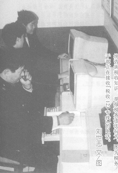 中国税务 2000年 第5期 图片新闻刘世志文/图 图片新闻 ◎ 刘世志文/图 上一篇 下一篇 @标图莫改莫删说始@ 为优化治税环境,促进优质服务,山东省即墨市国家税务局开通了“税收123专线”,市民只要拨打该专线电话,随时随地可以通过自动语音系统咨询税收知识,举报税务违法行为。图为税务干部正在接收“税收123专线”的电话。@标图莫改莫删说末@