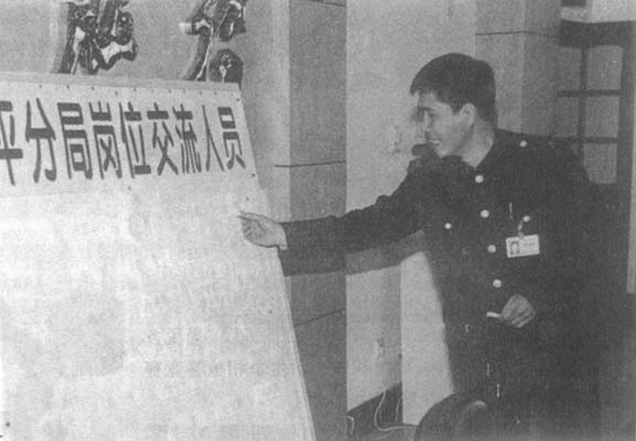 辽宁省沈阳市国家税务局和平分局实行择优上岗的用人制度,对全局干部按工作政绩、群众评定、领导评价等方面打分,前位自愿交流,后位转岗交流,由科长摘牌聘用。图为摘牌现场。