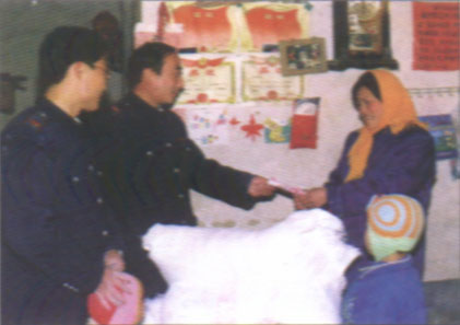 江苏省赣榆县地方税务局广泛开展社会公益活动。2000年全局累计捐款11万多元,捐赠衣物1200件,与61名特困生、28户特困户、一个贫困村结成帮扶对子。图为该局同志走访慰问帮扶对子。