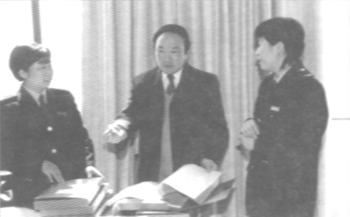 湖北省武汉市地方税务局十分重视基层文明创建工作,在167个税务所开展争创“三优一满意税务所”(优美环境、优良征管、优质服务、人民满意)活动,有力地促进了基层的全面建设。图为市地税局局长孙亚(图中)与“三优一满意税务所”的税务人员探讨如何进一步加强基层税务所的资料管理。