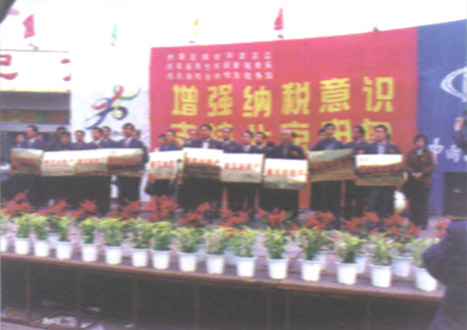 中国税务 2001年 第6期 图片新闻 图片新闻 上一篇 下一篇 今年税收宣传月期间,安徽省安庆市国家税务局组织了丰富多彩的宣传活动,图为该局干部在街头向外国朋友散发税收宣传资料。河北省邢台市团委、市国家税务局、市地方税务局在税收宣传月中联合举办了“增强纳税意识,支持北京申奥”为主题的大型税收宣传活动。图为在活动中表彰“模范纳税户”。