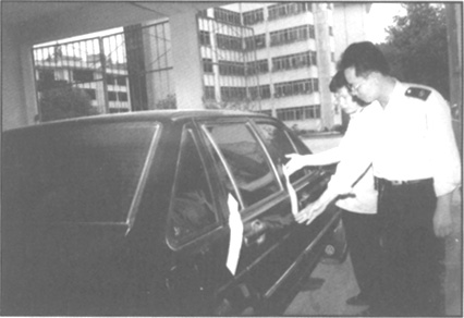 广西壮族自治区三江侗族自治县国家税务局认真贯彻全国依法治税会议精神,严格清理欠税,特别是加大对改制企业的清欠力度,确保所欠税款不流失。图为税务执法人员依法查封欠税企业的非生产性车辆。
