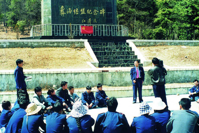 四川省石棉县、冕宁县国家税务局组织税务干部到红军长征途中刘伯承与彝族首领小叶丹结盟地“彝海”进行革命传统教育,并共商两县接合部的税收征管工作。