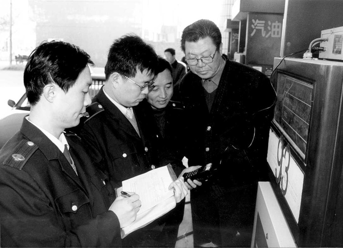 河北省邯郸市复兴区国家税务局为辖区加油站安装了ic卡报税系统,全部实行计算机管理,进一步强化了对加油站的税收监控。图为税务人员在安装测试ic卡申报系统。