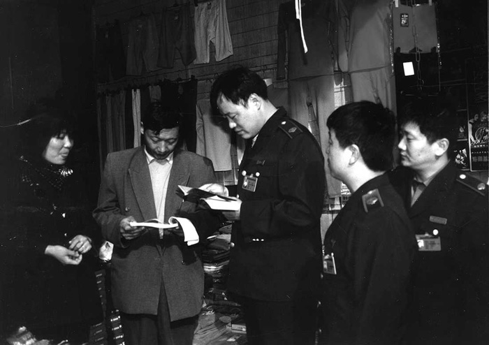 河南省洛阳市国家税务局以全国统一开展的整顿税收秩序为契机,加强对个体工商业户的税收管理,保证国家税收及时足额缴纳入库。图为税务人员正在检查纳税人申报纳税情况。
