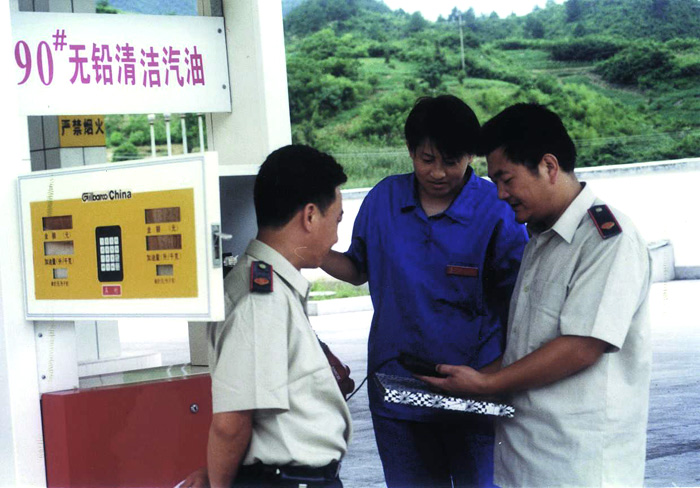 安徽省绩溪县国家税务局采取责任到人、逐月核对等措施,加强对全县加油站的管理,防止加油机税控装置被改动、毁坏或搞“体外循环”少计成品油销量,偷逃增值税。图为该局税务干部在加油站核对数据。