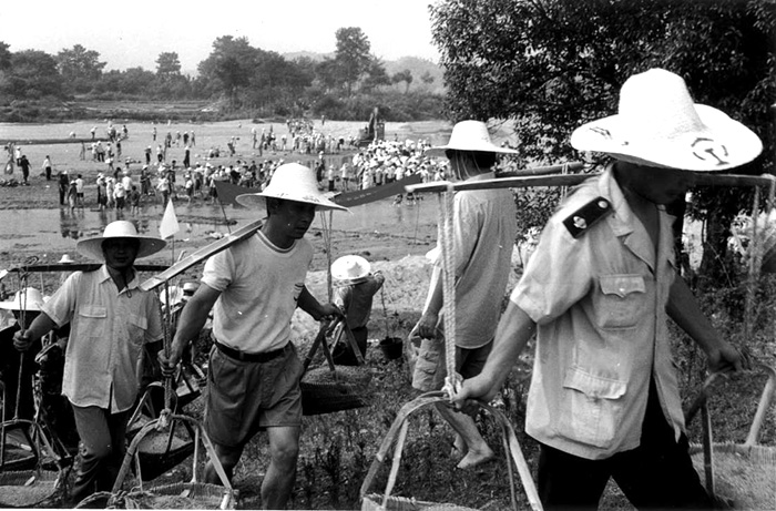 江西省广昌县国家税务局在该县特大洪灾发生后,积极与全县干部群众掀起了生产自救、重建美好家园的劳动热潮。图为税务干部帮助受灾群众抢修农田水利设施。