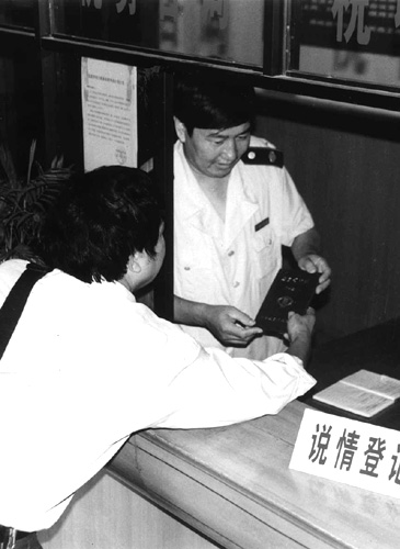 湖北省宜昌市地方税务局草埠湖分局为了抵挡“说情风”,设立了说情登记处和说情登记台账,对“说情者”进行登记、曝光。实施这项措施之后,使说情登记处变成了纳税咨询处。图为税务干部在为纳税人讲解办税事宜。
