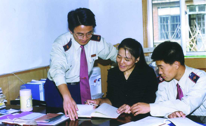 山东省诸城市国家税务局根据加入世贸组织后外商踊跃来华投资办企业的实际,积极帮助外商做好工作。图为诸城税务干部在新建立的日本独资企业指导会计做账。