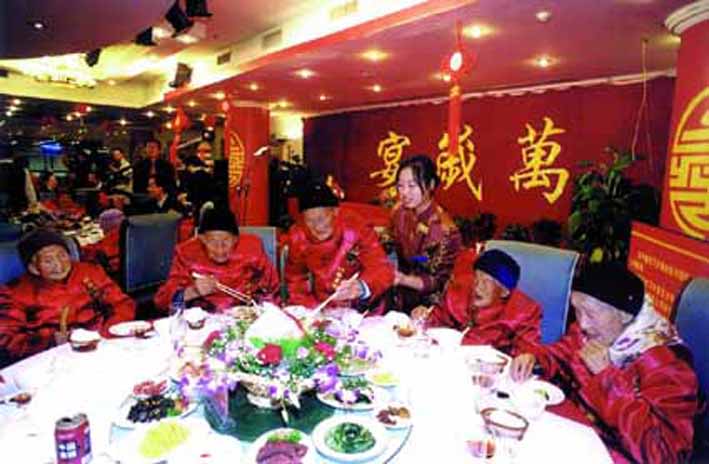 中国税务 2003年 第1期 图片新闻 万岁宴奇观 ◎ 友谊 新通 国勤 夏军 上一篇 下一篇 位列全国六大长寿之乡的江苏省如皋市,在145万人口中百岁以上老人多达172人。全市平均预期寿命为75.5岁,比世界平均预期寿命高出整整10岁。为传承尊老敬老的传统美德,弘扬良好的社会道德风尚,如皋市委、市政府于2002年10月隆重举办了由百位百岁寿星参加的“太平盛世万岁宴”。 >>阅读全文