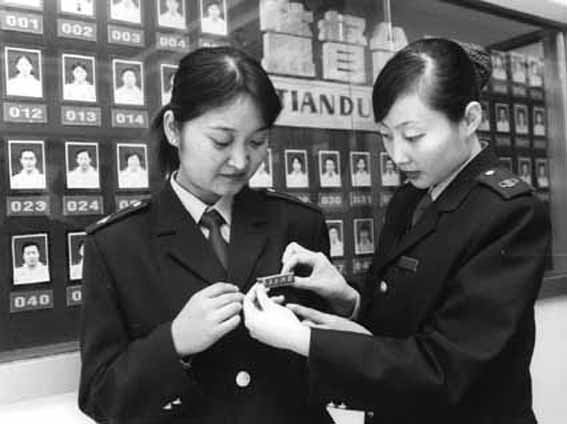 山西省长治市国家税务局二分局为转变工作作风,注重强化税务干部队伍的宗旨意识,促进了税务干部主动为纳税人提供优质服务,文明征税。图为税务干部坚持佩戴“为人民服务”胸徽上岗。