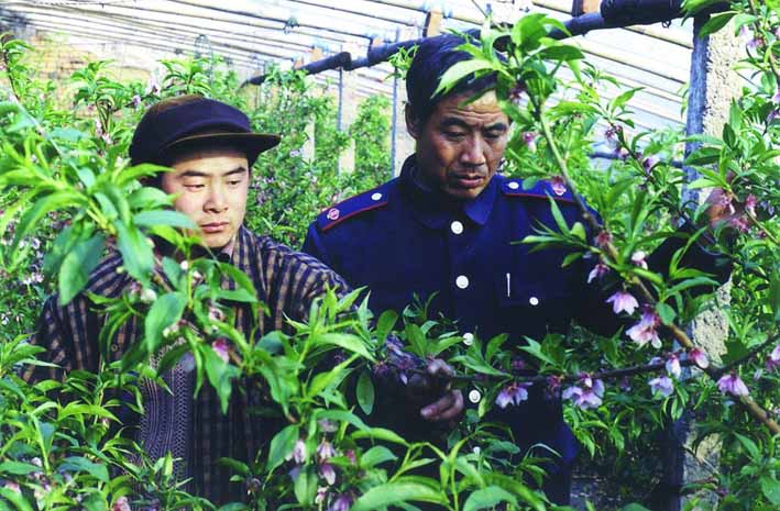 河北省滦南县地方税务局派出下乡工作组深入农村,帮助农民解决生产和生活中的困难。图为工作组人员在了解大棚油桃的生长情况。