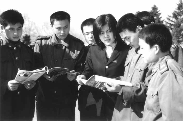 黑龙江省佳木斯市国家税务局前进分局在开展“学习实践‘三个代表’重要思想,为全面建设小康社会做贡献”教育活动中,组织税务干部走进军营向部队官兵宣传税收政策。图为税务干部正给部队官兵宣讲税法。