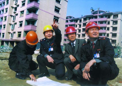 山东省枣庄市地方税务局市中分局加强对房地产开发企业的税收控管,通过日常检查和实地调查,有效地堵塞了税收流失。图为税务干部在工地进行实地调查。