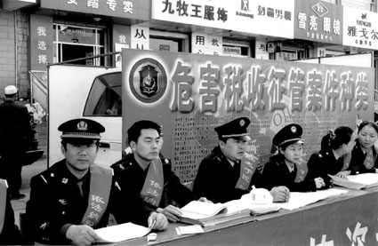 新疆维吾尔自治区阜康市国家税务局与公安部门联合开展税收法制宣传教育活动。