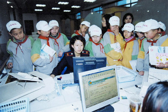 江苏省常熟市国家税务局组织小学生到纳税服务厅进行社会实践活动,向他们普及税收知识。