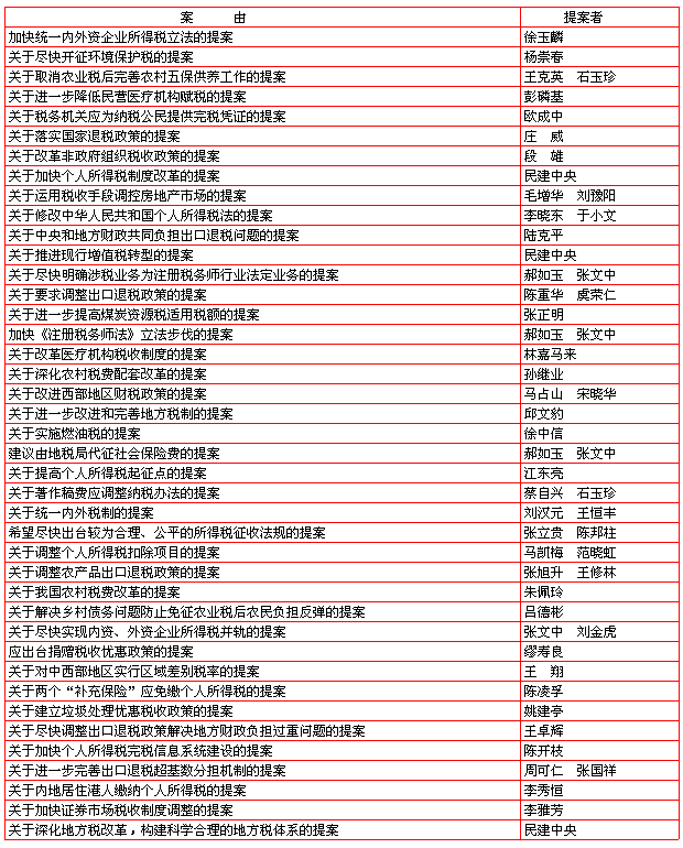 全国政协十届三次会议部分涉税提案