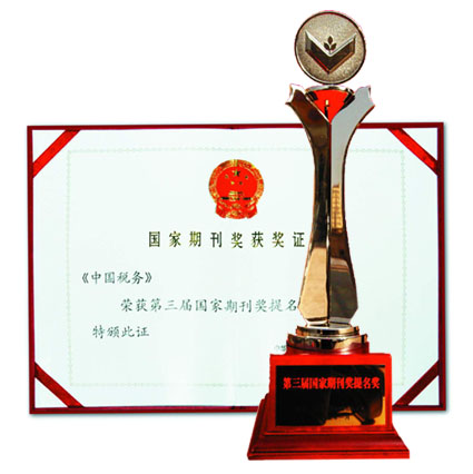 中国税务 2005年 第6期 本刊专稿 《中国税务》杂志荣获第三届国家期刊奖提名奖 总局领导作出批示予以祝贺和鼓励 ◎ 本刊记者 王平 上一篇 下一篇 本刊讯 近日,第三届国家期刊奖评选揭晓,《中国税务》杂志荣获国家期刊奖提名奖。这是党中央、国务院对全国报刊实行治理整顿的新形势下,《中国税务》杂志荣获的又一项国家级大奖,也是《中国税务》杂志继2003年荣获国家期刊奖之后再一次赢得殊荣。 >>阅读全文