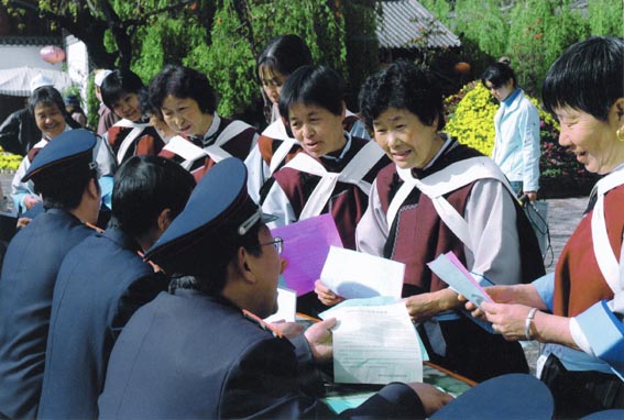 云南省丽江市国家税务局向纳西族群众宣传税法知识,助推当地旅游经济发展。