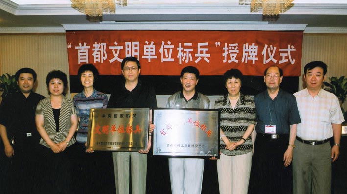 本刊讯 6月29日下午,中国税务杂志社充满了喜庆的气氛,会议室中传出阵阵掌声,“首都文明单位标兵”授牌仪式正在进行。中央国家机关精神文明建设协调领导小组副组长兼办公室主任刘淑琴、办公室副主任杨宝琴、张景龙,国家税务总局机关党委常务副书记权芳楼、副书记李尚斋、办公室主任施长恩等领导专程来到中国税务杂志社,向中国税务杂志社颁发了“首都文明单位标兵”和“中央国家机关文明单位标兵”标牌。