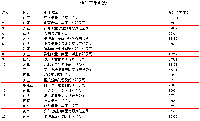 2004年度中国七十行业纳税二十强排行榜