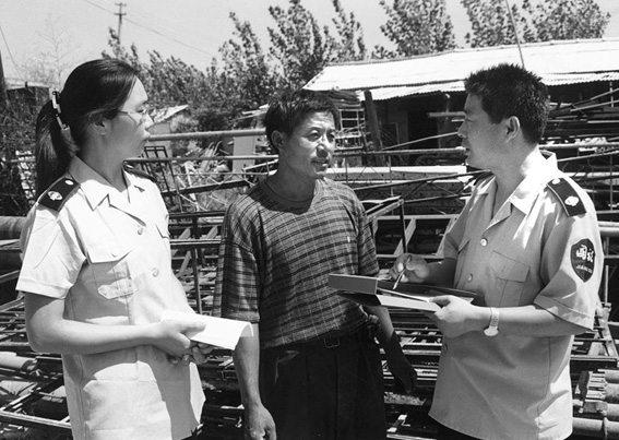 江苏省丰县国家税务局全面推行税收管理员制度,有效堵塞了税收管理的漏洞。图为税务干部在管理责任区进行调研。