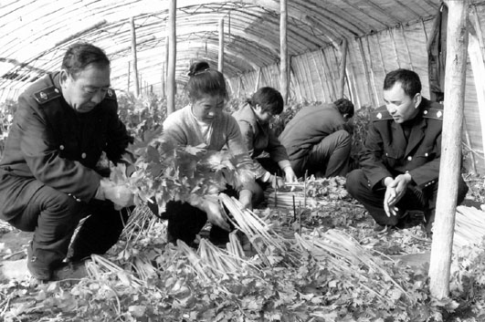 河北省滦南县地方税务局组织下乡工作组为农户解决实际困难,图为税务干部了解菜农的生产销售情况。 贺玲 彦国 文/图
