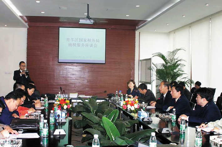 四川省成都市青羊区国家税务局与地方税务局携手将最新的税收政策送到企业。 寇艳 黄吟 文/图