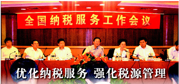 全国纳税服务工作会议2007年5月30~31日在北京召开。国家税务总局党组书记、局长谢旭人和党组成员、副局长宋兰出席了会议并分别作了重要讲话,要求全国税务系统坚持服务与管理并举,不断提高税法遵从度,努力构建和谐的税收征纳关系。这次会议是全国税务系统召开的首次纳税服务工作会议,来自各地主管税收征管和纳税服务工作的同志参加了会议。