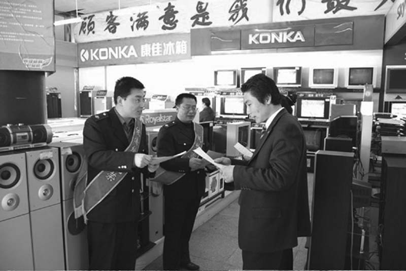安徽省来安县国家税务局采用多种形式开展税法宣传。图为该局税务干部送税法进超市、商场。
