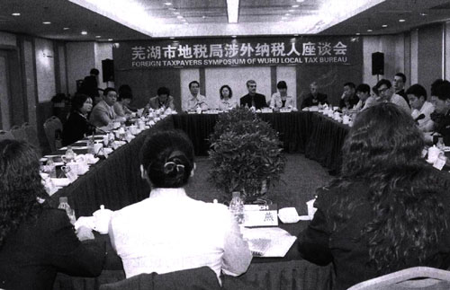 涉外税务 2009年 第6期 图片新闻 图片新闻 ◎ 范玲凤 上一篇 下一篇 近日,安徽省芜湖市地方税务局召开涉外纳税人座谈会,会议邀请了13家涉外企业的纳税人代表参加。纳税人代表在座谈会上踊跃发言,并就与外资企业和外籍纳税人有关的问题发表了意见和看法。对此,该局税务干部进行现场解答,并指定专人提供会后纳税服务。图为参会人员在涉外纳税人座谈会上踊跃发言的情况。