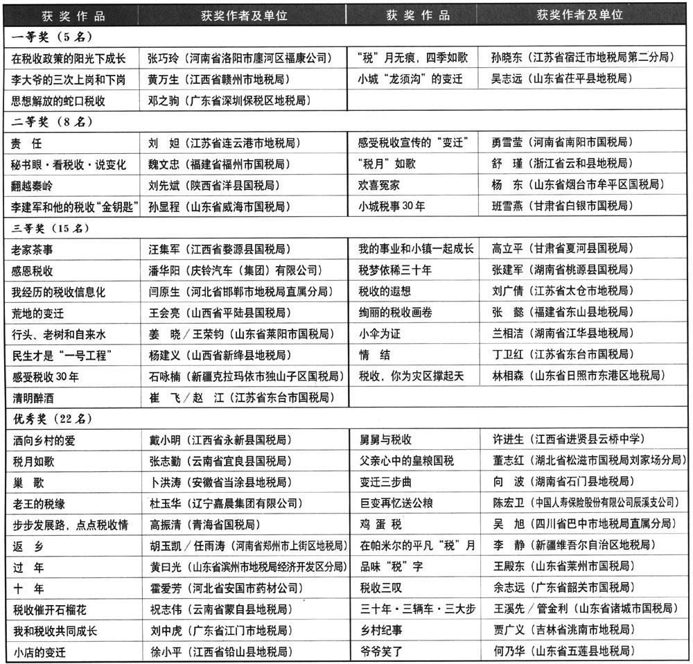 “税收·发展·民生”征文获奖名单