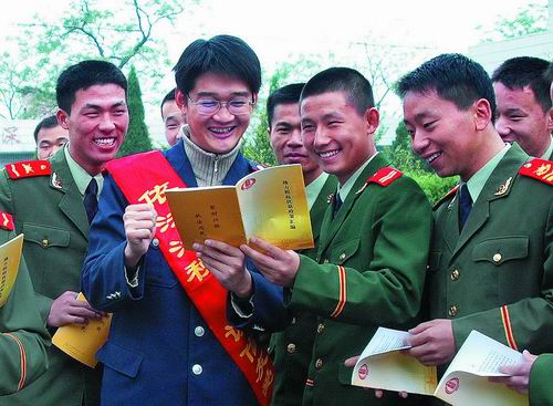 江西省南丰县地税干部走进警营向官兵宣传税法知识。