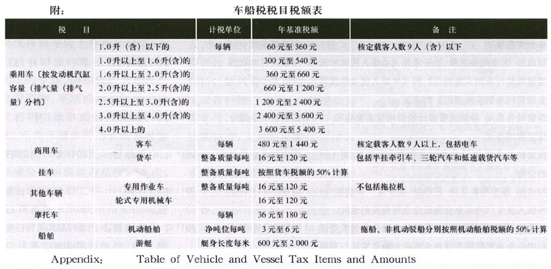 the vehicle and vessel tax law of the people's republic of china shall be effective as of january 1st,2012