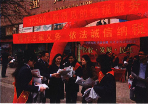 山东省日照市市区国税局结合第二十个税收宣传月活动,向广大纳税人宣传12366纳税服务热线。