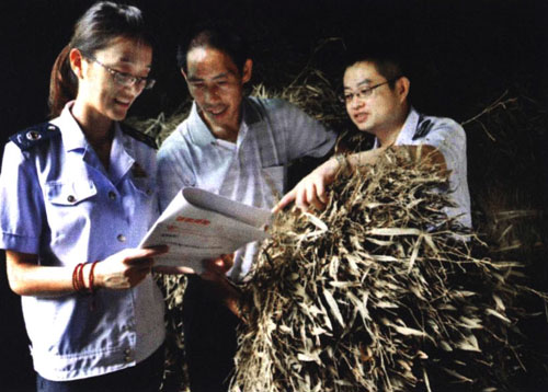 浙江省临安市国税干部深入田间地头,将涉税须知、便民手册交到农户手中,让农民切实享受到免税政策。