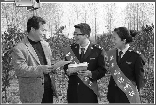 江苏省新沂市国税干部深入田间地头,向农民朋友宣传涉农税收优惠政策。吴国明 王康 文/图