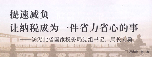 湖北省国家税务局出台关于推进提速减负工作“十条意见”的用意是什么,其中包括哪些举措?就此,我们专门采访了湖北省国家税务局党组书记、局长刘勇。