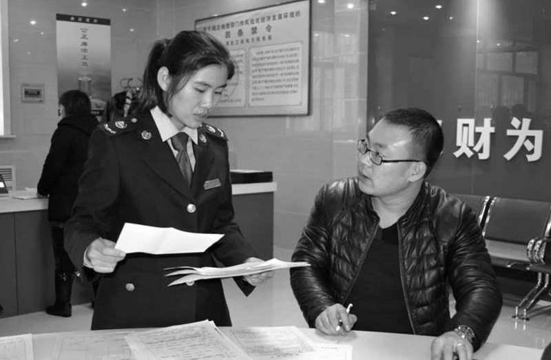 黑龙江省虎林市地方税务局虎林分局以满足纳税人合理需求为目标,倾情服务纳税人。图为税务干部辅导纳税人办理税务登记。