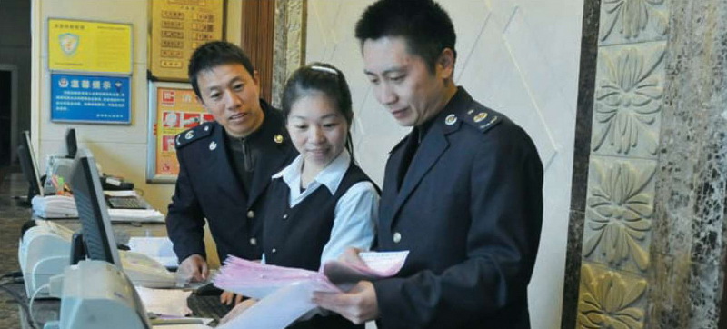 江西省南丰县地方税务局依托第三方信息,规范旅店行业税收征管。图为税务干部在某旅馆采集数据。黄炳丁 黄轶民 文/图