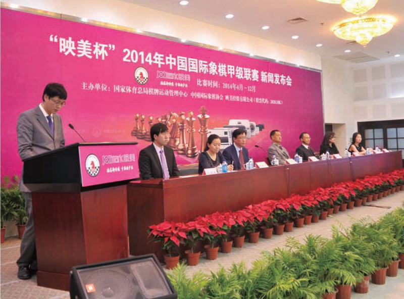 2014年3月25日,“映美杯”2014年中国国际象棋甲级联赛新闻发布会在京召开。图为映美控股有限公司总裁欧国伦在开幕式上致辞。