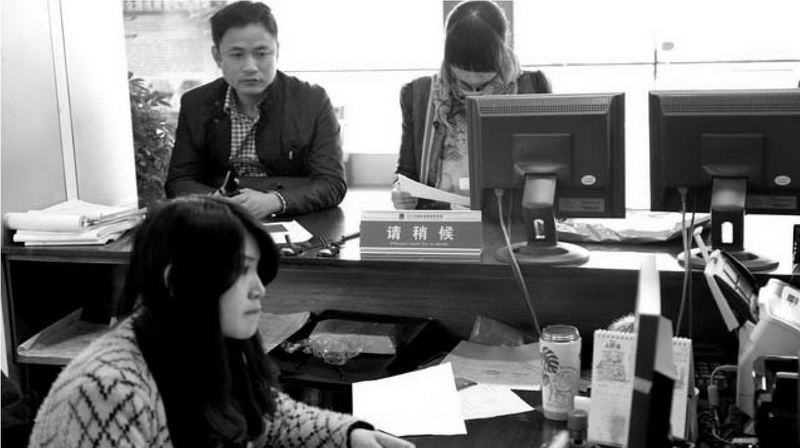江西省德安县国家税务局邀请纳税人“当一天征税员”,开展换位体验活动。图为企业人员在办税服务厅受理纳税人领购发票业务。