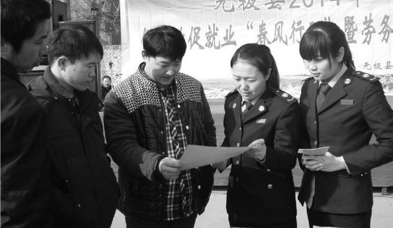 河北省无极县地方税务局积极助力“倡创业促就业‘春风行动’暨劳务洽谈会”活动,帮助农民工和大学生在家门口找到工作。图为地税干部向群众讲解税收优惠政策。