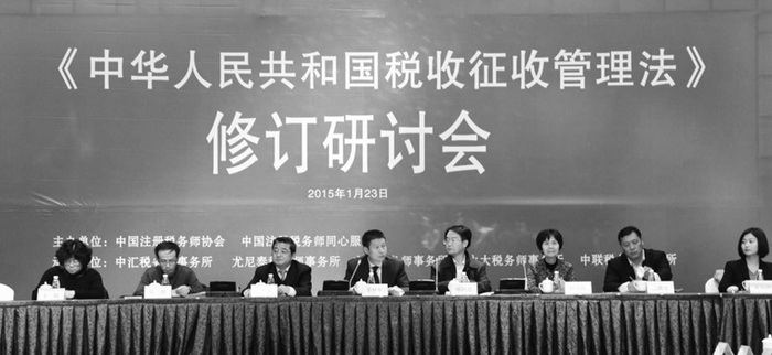 2015年1月23日,由中国注册税务师协会和中国注册税务师同心服务团共同主办,中汇税务师事务所、尤尼泰税务师事务所、立信税务师事务所、北京永大税务师事务所、中联税务师事务所承办的《中华人民共和国税收征收管理法》修订研讨会在北京举行。来自中共中央统战部、全国人大、国家税务总局、学术界以及涉税专业机构的专家学者近100人出席研讨会,与会代表围绕在《税收征管法》修订中确立涉税专业服务机构的法律地位和法定业务等议题展开深入研讨。中税协副会长兼秘书长李林军主持会议。经济日报、科技日报、新华社、中国税务报、中国税务杂志等21家媒体记者到会采访。