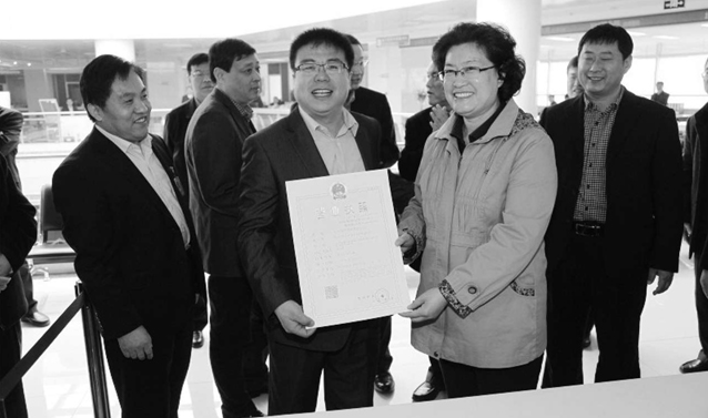 中国税务 2015年 第4期 图片新闻 图片新闻 上一篇 下一篇 山东省德州市禹城市国家税务局携手地税局、工商局、质监局、公安局,在市政务中心的统一协调下共同研发了行政审批平台,实现了工商营业执照、税务登记证、组织机构代码证“三证合一”。图为德州市委领导为“三证合一”施行后第一户办理登记的纳税人颁发营业执照。