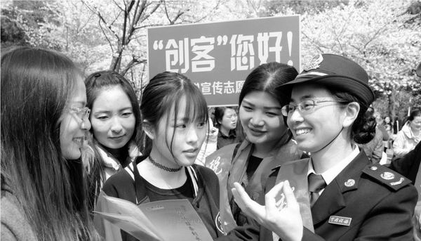 江苏省南京地方税务局“税收宣传志愿者”开展“‘创客’您好!”进校园系列活动,向大学生宣传扶持“创客”创业的税收优惠政策。