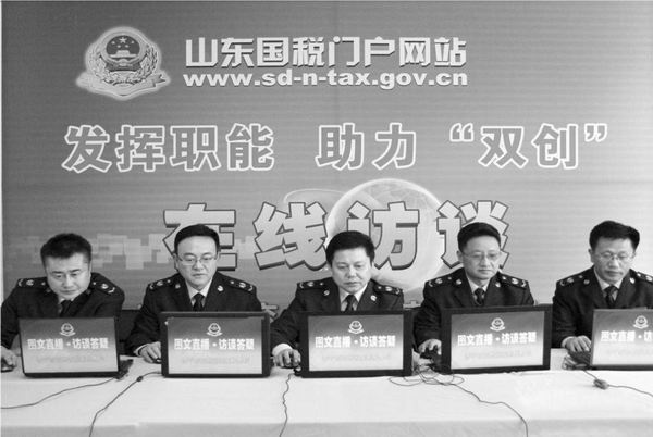 中国税务 2016年 第4期 图片新闻 图片新闻 上一篇 下一篇 山东省济宁市兖州区国家税务局举办“发挥职能 助力‘双创’”局长在线访谈活动。该局领导带队走进在线访谈直播间,向广大网友宣讲税收政策,解答网友在线提出的关于“三证合一”、国地税联合办税、税收优惠政策等方面的问题。
