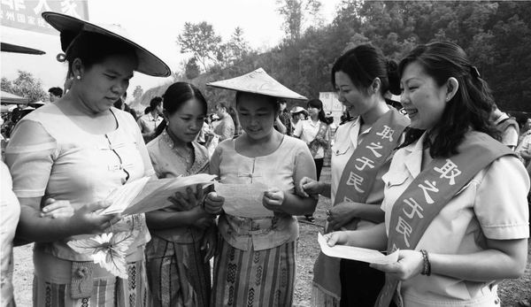 中国税务 2016年 第9期 图片新闻 图片新闻 上一篇 下一篇 云南省德宏傣族景颇族自治州国家税务局结合当地纳税人中少数民族众多的特点,将营改增政策制作成傣文、景颇文译本送到纳税人手中,用少数民族语言和群众喜闻乐见的文艺节目宣传营改增政策。