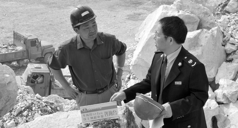 江西省上高县地税干部把咨询台搬进矿山,现场向经营者宣传年所得12万元以上个人所得税自行申报税收政策。